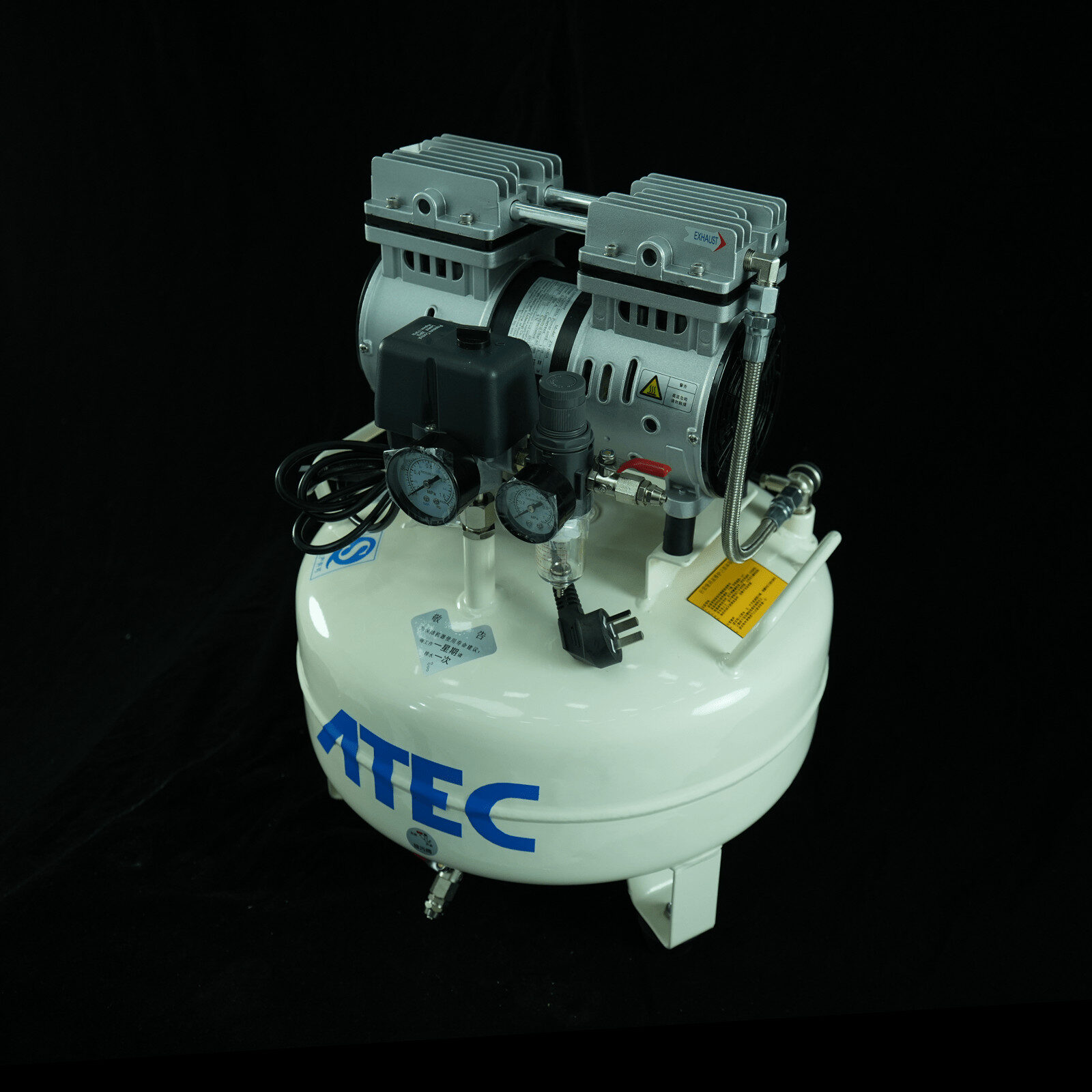 Oil-Free Air Compressor ATEC AT60/25 delivers powerful, stable airflow with ultra-low noise and zero oil contamination. Ideal for watchmaking, electronics, dental labs, and precision workshops. Reliable, compact, and maintenance-free design.